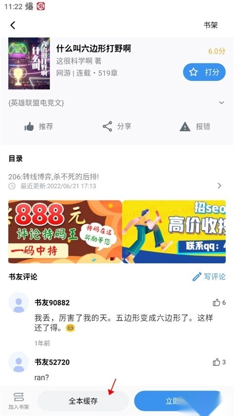 3、在小说界面中选择全本缓存。
