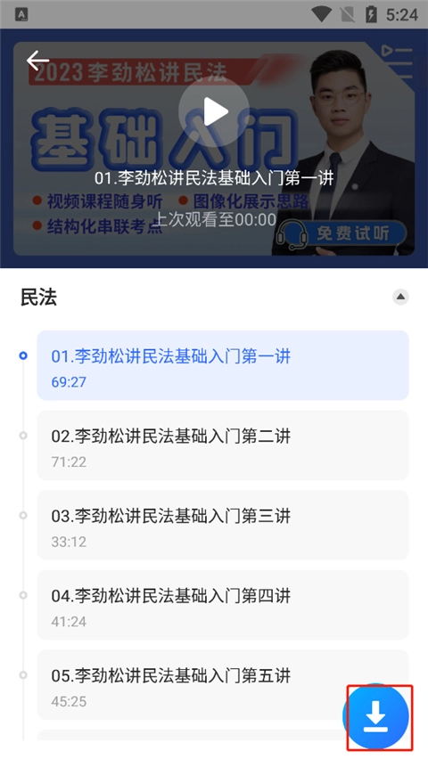 4、之后,用户就可以开始视频课程学习啦,你也可以点击,将它到本地随时随地进行学习。