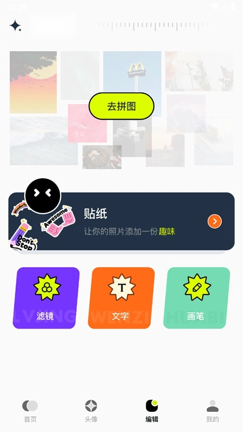 5、也支持图片编辑,你可以将多张好看的图片编辑在一起,也可以为图片添加滤镜、文字、画笔等等