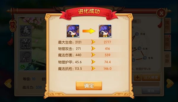 在我们将所有的经脉都打通后,就可以进化英雄啦!