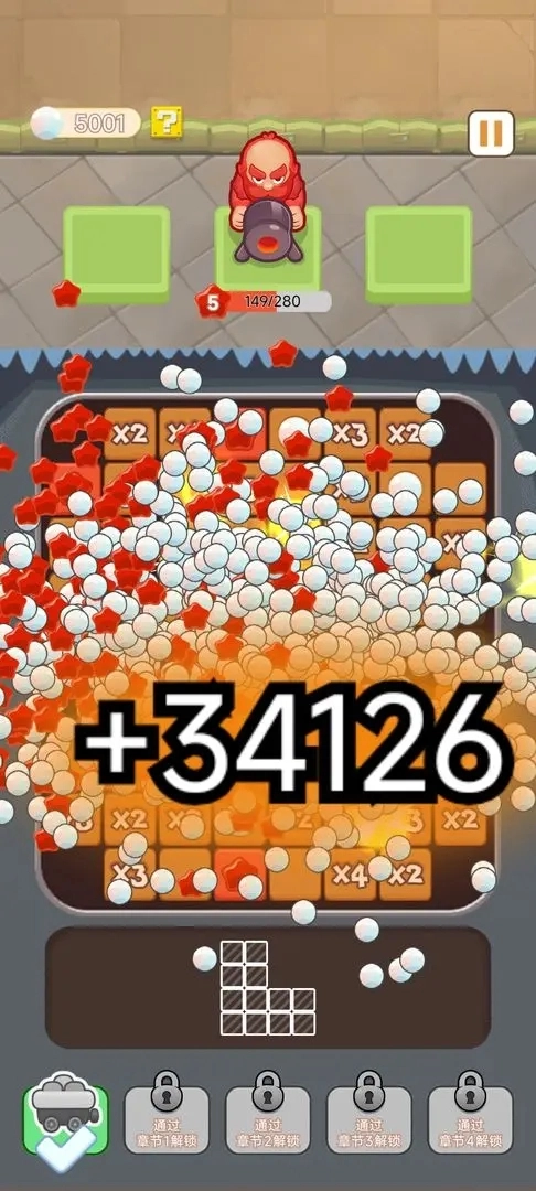 通过消除合成的方式提升角色等级,以此获取更多的白球弹药