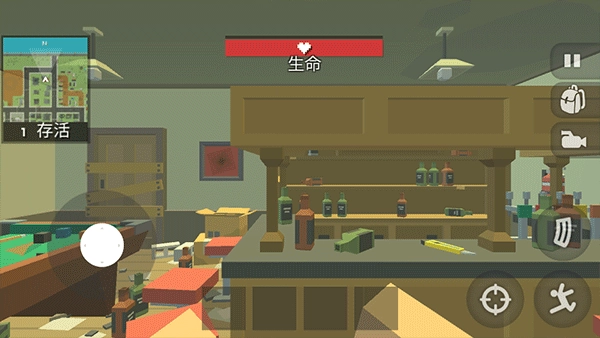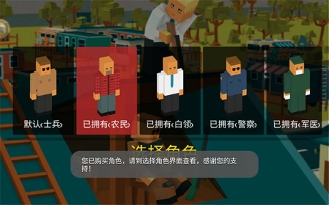 2、超清像素的画风,方块状的角色造型与城市建筑,除了对手,还有僵尸猛兽等你消灭;