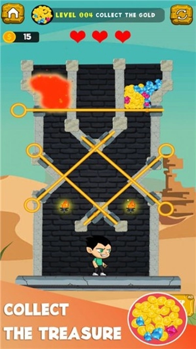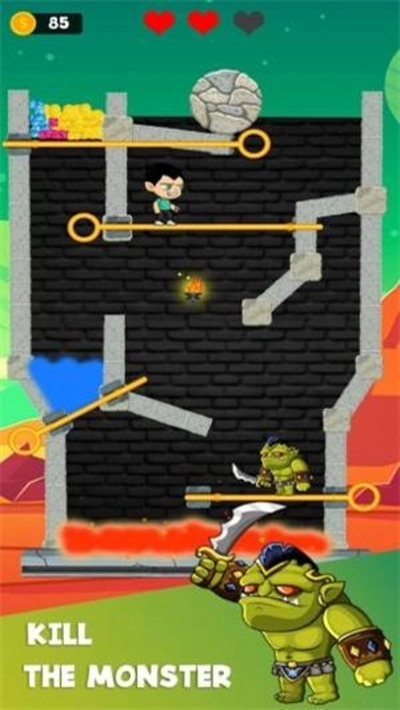 1、这是一款关卡类游戏,每个机关的设计难度都不算高,不过多个陷阱之间环环相扣,需要通过操作来解决。