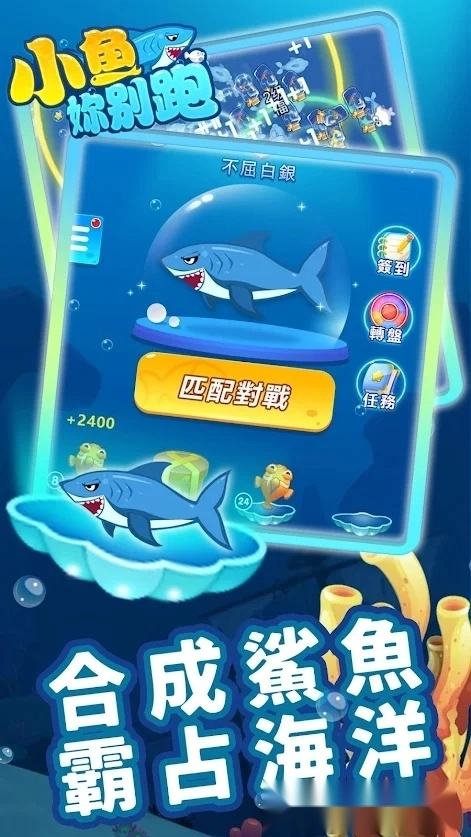 操控你的专属鱼群,通过吞食其他鱼类来升级进化,朝着“海中霸主”的目标全力冲刺!与其他玩家同台竞技,只有坚持到最后的人,才能成为真正的赢家。合成不同鱼种还能解锁更高级的形态,各种搞怪独特的外观,让你在海底世界尽情驰骋!