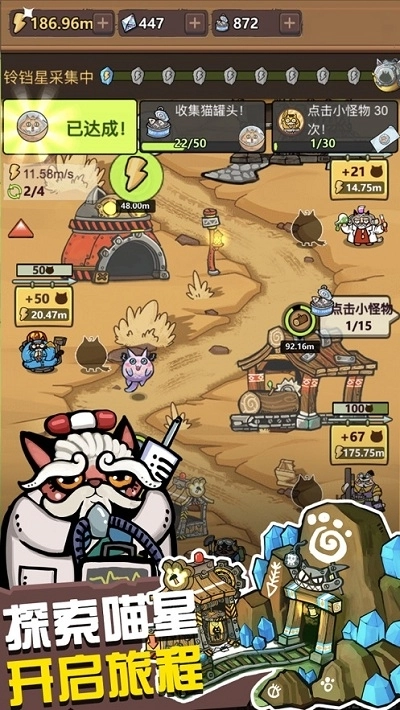 为了重建家园,指挥猫猫收集能量,我们的征途是星辰大海!对于偷取能量的怪物,必将重拳出击!消灭小怪物,还能收获意外的惊喜(像猫猫一样点点点真是high到不行啊! )