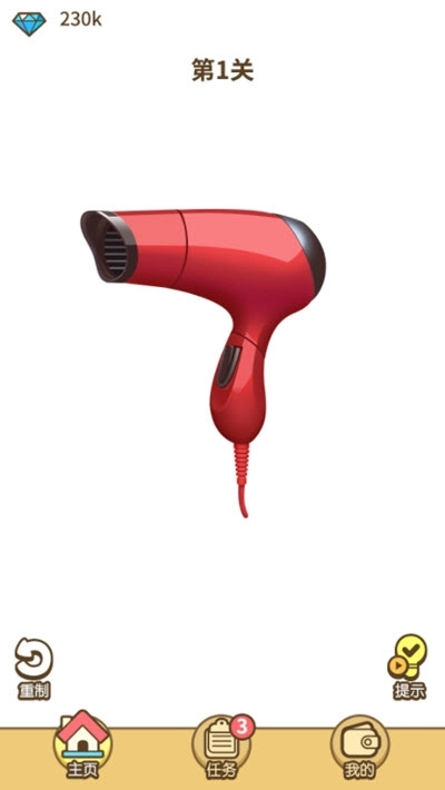 游戏以图片的表现形式,通过一个个模型展现了生活中常用工具,玩家通过将各个零件组装起来。