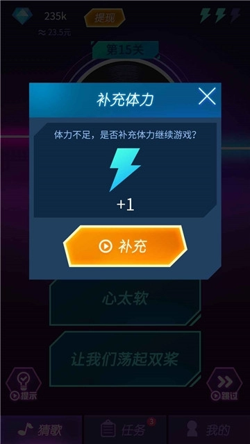 2、很多特色的答题玩法在游戏挑战中可以展开,诸多的潮流行音乐都会成为你猜测的关卡内容。