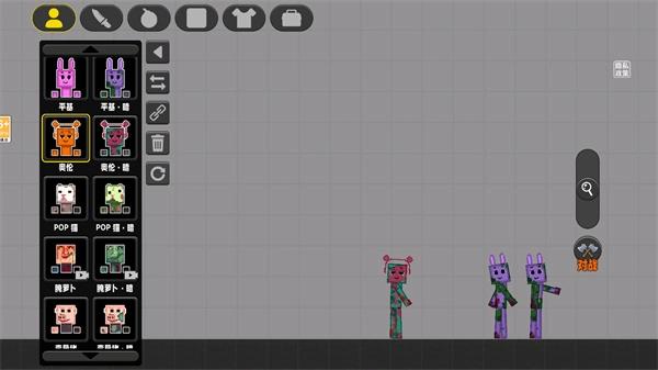 1、进入游戏后,在界面左侧能看到不少卡通角色,你可以直接把它们拖到地图里。