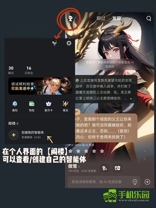 1、可以在个人界面的【阁楼】中创建自己的**。