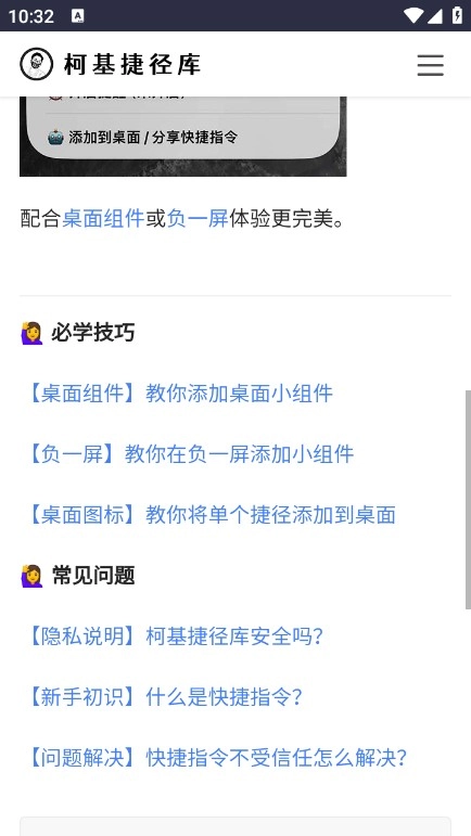 1、本网站目前涵盖快捷指令规则、快捷教程和进阶玩法这三篇内容,后续会逐步完善补充。