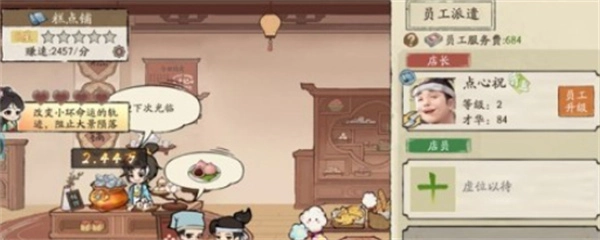 4、同时,为了提升经营效率,你可以点击“派遣”选项,派遣员工至不同的店铺工作。合理分配人力资源是经营的关键。