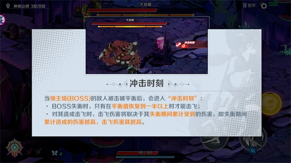 2.战斗机制:怪物血条上方的平衡值填满后会进入失衡状态,此时使用魂技将其击飞,撞击墙面可产生额外伤害。BOSS的失衡值满后,要等平衡值恢复到一半时再击飞,击飞造成的伤害与失衡状态下承受的伤害呈正比。