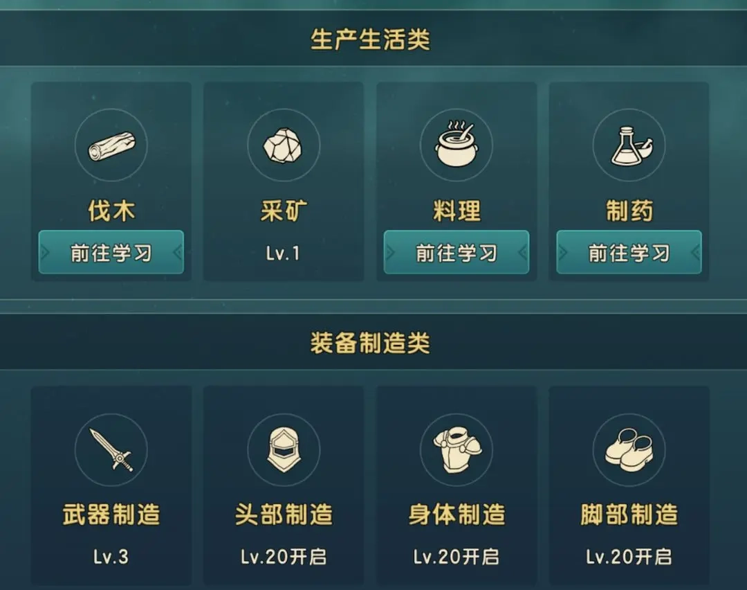 需要留意的是,多数时候不必执着于获取红色品质的装备。特别是在角色等级达到40级之前,直接使用紫色装备完全可行(即便到了40级,也能通过紫色装备搭配合适的词条与装备技能来增强整体战力,只有武器在某些情况下可以考虑换成红色)。因此在这个阶段,只需解锁所有生活制造功能即可,千万不要耗费过多资源去打造装备——毕竟打造装备不仅要消耗体力,还会用掉银币和魔币,而这两种货币在后续玩法中会有很大的需求。要是已经打造了装备,也可以适当留存,因为日常的一些玩法会要求提交装备,留着能派上其他用场。