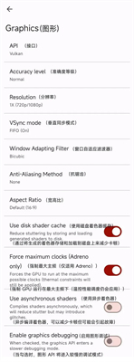 4、关于“API”设置,使用N卡的用户无需调整;A卡用户若显卡性能较好,建议选择Vulkan;如果A卡是集成显卡或性能一般,则推荐选择“OpenGL”。