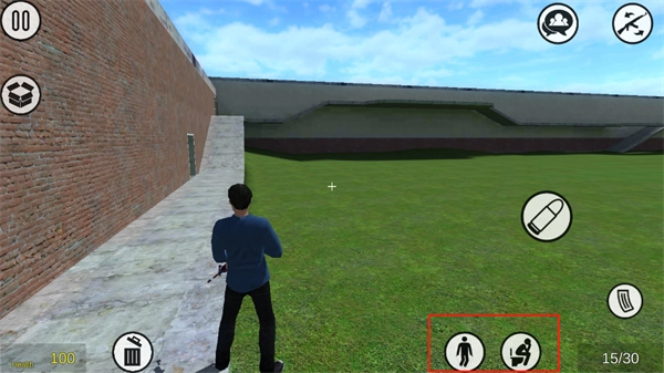 5、下方右边的两个按钮一个是跳跃,另一个是蹲;