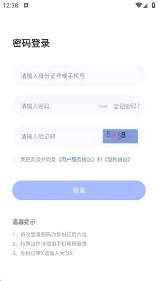 2、在这个页面,输入身份证或者手机号,再输入密码,点击登录把。
