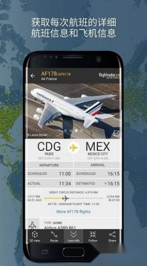 4、航空信息:在屏幕上触摸飞机,可以查看航班详情,并为您提供更全面的航空信息查询,支持用户更多使用。