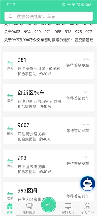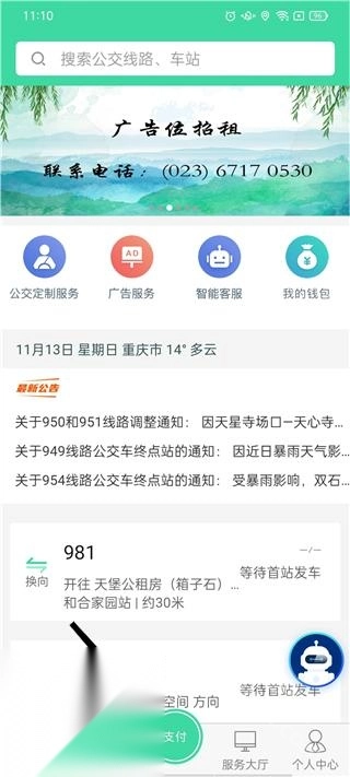 2、成功进入软件后,在首页我们可以参加最新的重庆公交车最新公告;