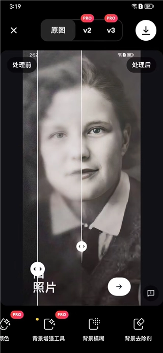 2、提供直观的处理前后对比视图,让用户感受显著的照片优化效果。