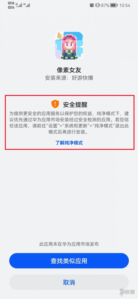该情况是因为华为鸿蒙系统开启纯净模式后会有相关限制,此限制要求只能从华为系统自带的应用市场下载软件,要是在非华为应用市场的其他应用平台(像快爆、浏览器、应用宝、百度助手等),都无法正常操作。碰到这个问题,只要关闭纯净模式,就能在快爆里正常使用啦。