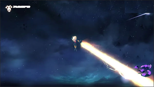 5、地面关卡结束后,主角会升入空中。空中关卡的核心特点是可自由移动,但无法使用魔法,操作手感与早年的部分2D双摇杆射击游戏完全一致。主角射出的光线对低等级杂兵有穿透效果,能一次性消灭多个敌人;不过中后期出现的高级敌人不仅能阻挡光线,还会释放追踪攻击,应对起来更棘手。此时建议用咒术辅助攻击靠近的敌人,不然容易因受伤中断连击,进而影响最终得分。