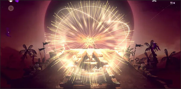 2、游戏采用关卡制推进,单人模式包含3个剧本、100多个小关卡(第3个剧本尚未上线)。每一关的内容高度相似,均为操控主人公运用自身放射光线的能力,消灭地图各处持续刷新的虚空敌人。第一个剧本的42个关卡归属于5个不同的祭坛,各祭坛场景风格稍有差异,但关卡内容几乎一致:每个祭坛下先是2至3关地面战斗,接着是2至3关站在祭坛顶端的防御战,随后还有2至3关空中战斗,最后是BOSS战,完成后便切换至下一个祭坛场景。
