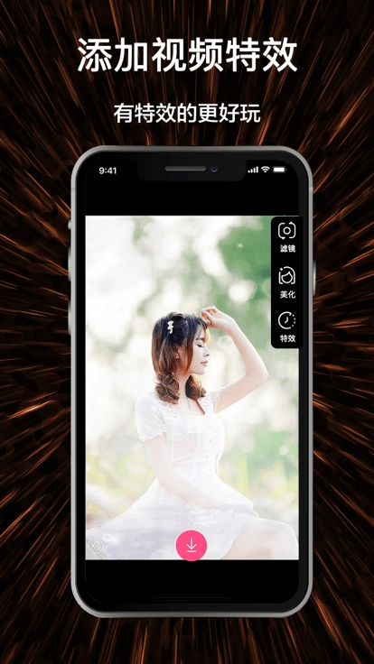 2、快速拍摄,搭配美化、交互式贴纸、滤镜功能,还能添加背景音乐进行拍照或拍摄视频,制作网络小视频,助您的视频轻松在众人中崭露头角。