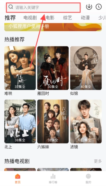 2、在此处,只需输入关键字,就能直接搜索到近期的电影和电视剧。