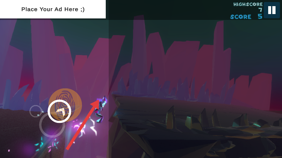 3、当玩家操控角色过程中,若遭遇障碍物,可通过点击指纹图标这类技能,使角色释放能量翻越障碍,从而继续前行并获取分数。
