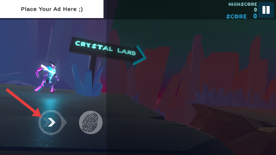2、一进入游戏,便能瞧见CRYSTAL LAND指示牌,点击左侧的箭头按钮,操控角色朝着该方向移动,对水晶之地的区域展开探索。