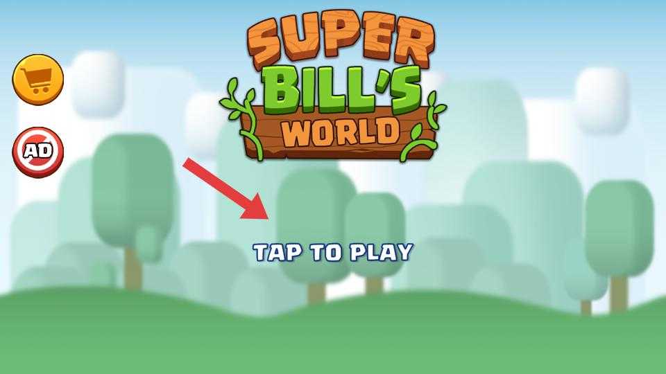 1在游戏的初始界面,能看到“ SUPER BILL IS WORLD ”这样的标题,同时还有购物车、AD 等图标。只需点击“ TAP TO PLAY ”,即可开启游戏冒险之旅。