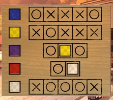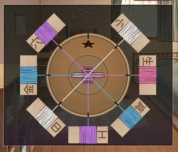 调整求签机为世道人心后打开发现里面空了,和神主对话获得新任务摆放签,查看左边的柜台,使用盒子就能直接放入签了,放入后我们又没有线索了,但是打开的盒子还在我们物品栏,查看一下盒子果然有线索了,黄色只有唯一位置第二格,紫色在黄色左边或者右边,蓝色只能两边位置,推理一下就获得了位置是紫黄红白蓝,调整完毕再次和神主对话。