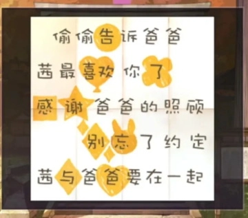 从普通结局的剧情中可以发现,妈妈同样拥有一个粉色护身符。因此,我们再次进入第八关,前面的流程保持不变。当获取蓝色护身符后,我们先返回家里,接着对妈妈使用蓝色护身符,如此便能从妈妈那里得到粉色护身符。随后,我们查看粉色护身符里的文字,发现这是一封写给妈妈的信。然而,依据现有的线索进行解读,得出的内容是【宝物上做记】。由于在日系解谜中,很少会出现无意义的文字线索,所以这条线索似乎不太对劲。