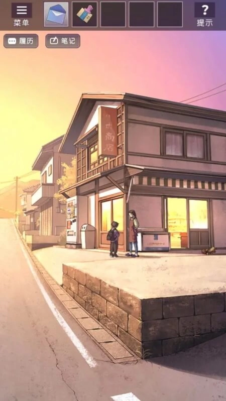 先查看管道,给小猫咪罐头后,再次查看管道,这时提示管道里有东西但够不着。接着查看河道中的踏脚石,会发现多了两根木棍,只是木棍太短。随后向右走到商店门口,在售货机下面使用木棍,就能拿到一根绳子。把绳子和木棍组合起来,就得到了长木棍。回到左边管道位置,使用长木棍获取破包装袋。再向右走两次来到小卖铺门口,将破包装袋交给店员,从而获得水果。向左走,把水果交给幽灵,本章便结束。 【第五关】剧情过后,再次与幽灵对话,然后进入神社与神主交谈,接到新任务——维修求签机。查看中间位置的红色柜子,那就是求签机,调查后提示上面很脏。走出神社找幽灵要手帕,向右走回家,打开水龙头洗手帕,之后向左走回到神社,用手帕擦拭求签机,终于得到了线索。