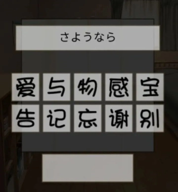 右走回家到卧室,对桌子上的笔袋使用新护身符就能开始写字了,这里我们选择感【谢与告别】,不过大概是汉化出了点问题上面写的是【さようなら】也就是再见,别忘了点一下下面的空白条,应该是汉化问题没有文字了,然后我们就获得了新的护身符,拿去交给幽灵进入普通结局。