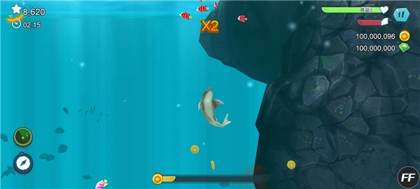 4、完成50个任务,寻找宝物取得金币与宝石,用来升级你的鲨鱼或者购买特殊救生道具。