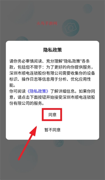 安装并打开顺电,在隐私政策界面点击同意