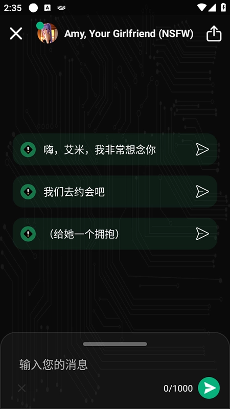 3.定制化对话:用户可输入具体需求,AI会根据需求调整回应方式,实现贴合心意的智能交流,无论是情感倾诉还是问题咨询,都能精准回应。