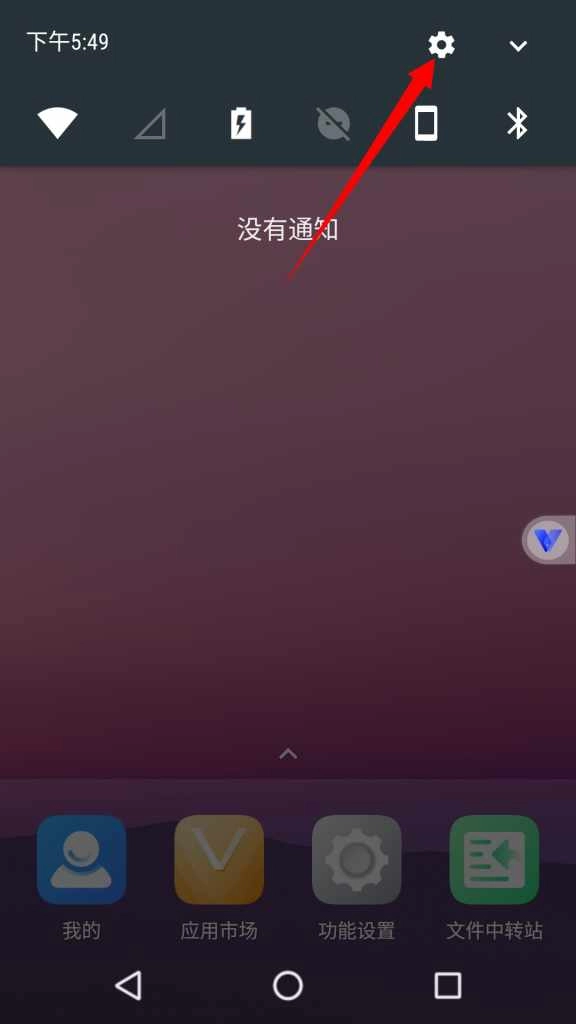 1、虚拟机顶部划出状态栏,长按设置按钮。