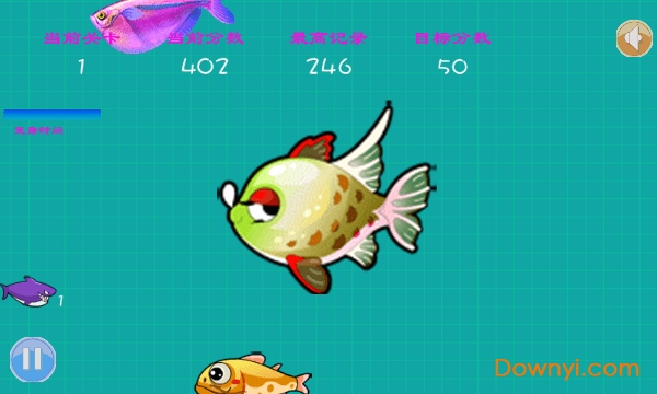滑动屏幕就能操控鱼儿游动,吃掉小鱼就能积累分数。不过一定要记住,得离那些模样凶狠的大鱼远远的。