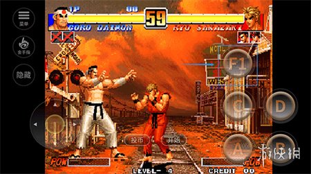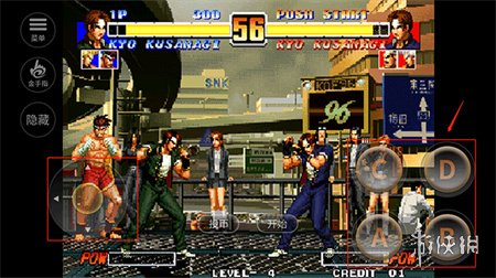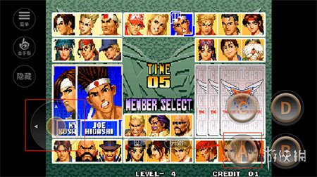 在游戏里,你得同时控制三位角色参与格斗,哪一方先把对方的三个角色都击败,哪一方就能赢下比赛。格斗开始之后,就用右侧的ABCD四个招式按钮来攻击对手。