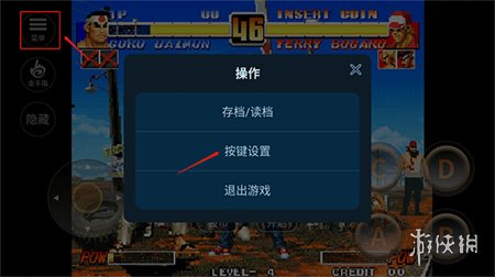 在游戏开始前,建议先进行按键和组合键的设置,点击左上角的菜单按钮,进入后点击“按键设置”选项。