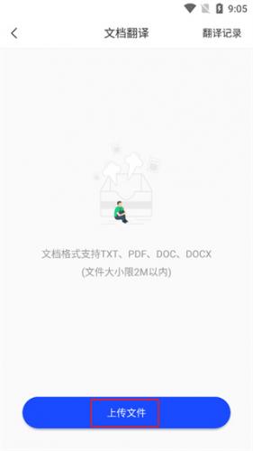 4、再次点击上传文件,用户需要将翻译的文件上传到软件中即可翻译;