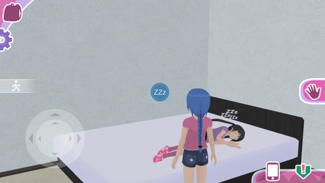 3、购买之后靠近女友的位置会有一个爱心的标志,点击一下游戏界面右侧的爱心标志进行交互;