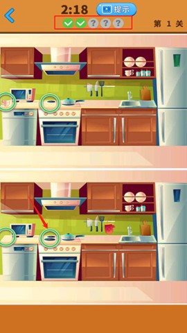 3、请仔细观察两张图片,找出并点击它们之间的不同之处,找到后不同的地方会被圈出。