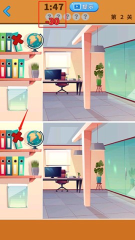10、若在时间耗尽前仍未找出五处不同,你就会遭遇游戏失败的情况,记得可以选择重新开始或是延长60秒时间;