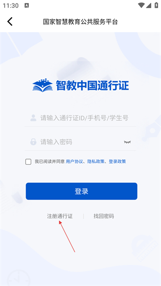 2、在登录页面点击【注册通行证】选项,进入手机号注册页面。