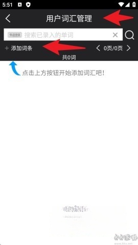 2、想把心仪的单词保存起来?别担心,点击“用户词汇”按钮,进入词汇管理页面,选择“添加词条”手动保存,随时回顾你的珍贵单词!