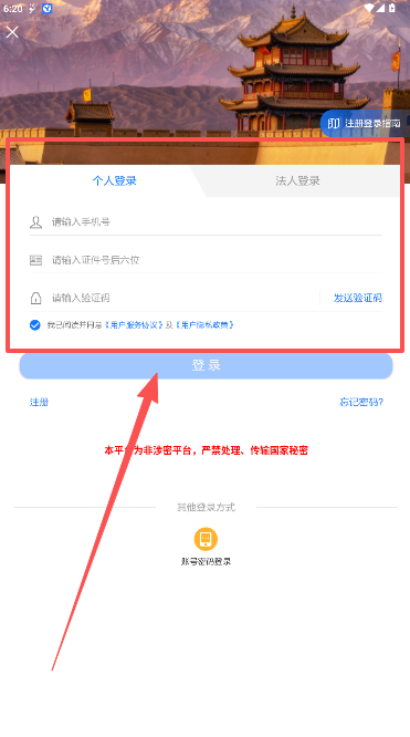 1、先确认注册登录的身份是个人还是法人,再进入系统。